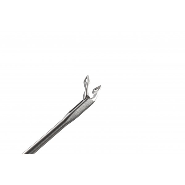 Fabricada en acer quirúrgic amb boca tipus cocodril par agarrar i retirar cossos estranys de forma segura inclús en condicions humides o viscoses.