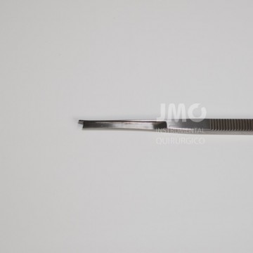 Periostótomo de Farabeuf curvo es un instrumento quirúrgico que permite permite cortar, despegar y elevar el periostio y otros anexos de la apófisis mastoides.