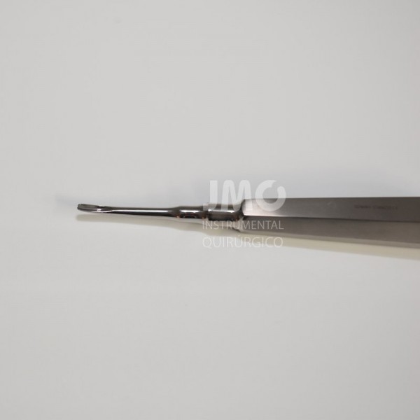 Gancho fuerte acodado derecha para microcirugía del oído.
